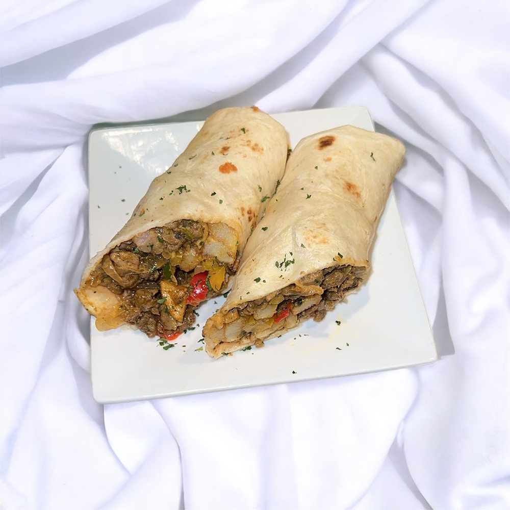 Beef or chicken wrap with fries, tomatoes and onions served with our bon gout sauce.